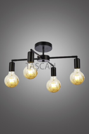 Pare Model Modern Spor Siyah 4'lu Glop Füme Camlı Avize