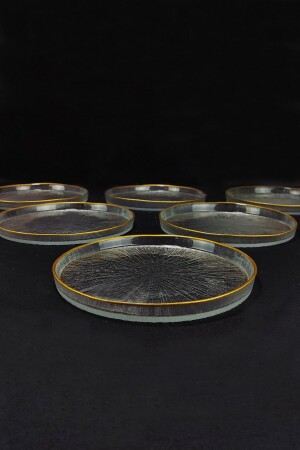 6' lı Cam Kek Pasta Tabağı Seti - Yaldızlı Lüks Pasta Takımı(16CM)