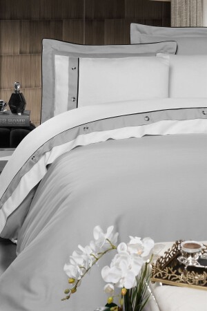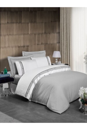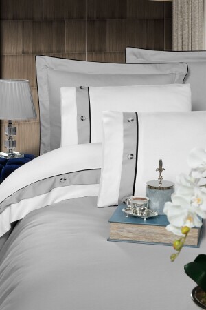 MNZ-Ricchi 100% القطن ساتيين غطاء غطاء مجموعة ورقة مزدوجة الرمادي الأبيض (بلاك بيب) CC