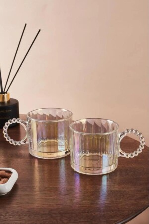 MNZ-Ringo Line Luster 2 Pack Glass Mug ملونة 325 مل 15176