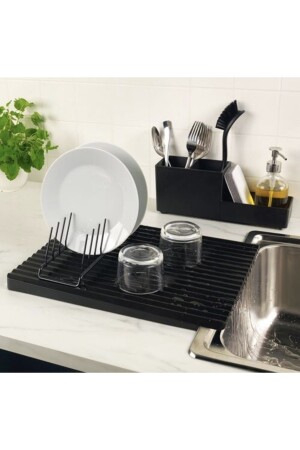 Bulaşık Kurutma Matı Bulaşık Kurutma Örtüsü Siyah Tezgah Üstü Bulaşık Matı Süper Emici Nanoflex