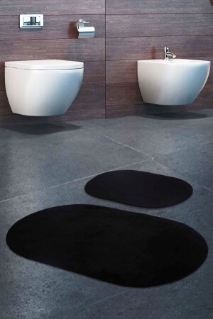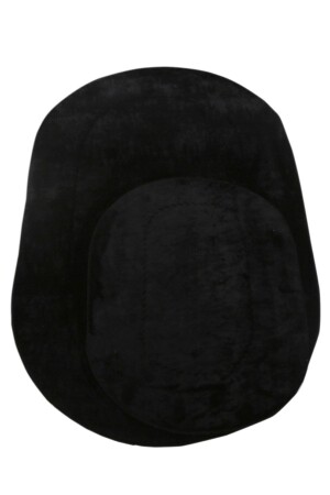 Lazer Kesim Peluş 2'li Oval Siyah Banyo Paspas Takımı