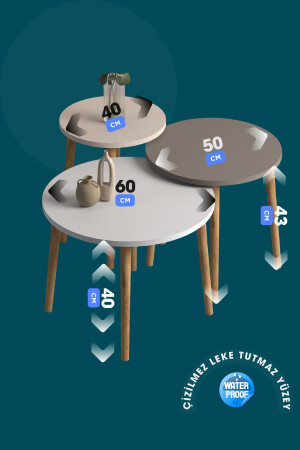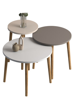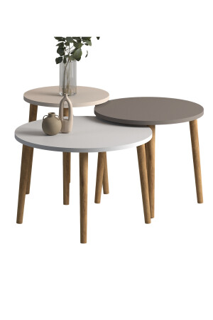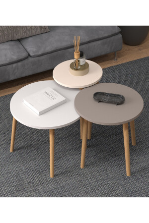 MNZ-Roma 3 قطع طاولة القهوة كريم رمادية أبيض روما طاولة القهوة كريم رمادية مظلمة بني