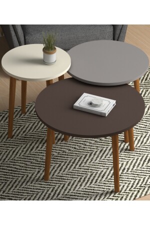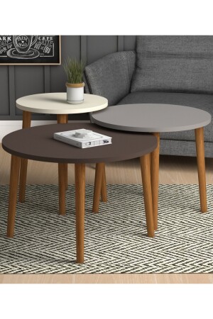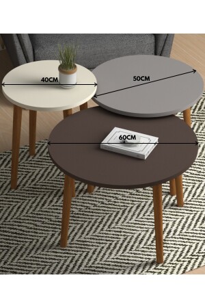 MNZ-Colorful Triple Nesting Coffee Table خشبية ساقي مربع تصميم بيسري كريم كابوشينو TYC00041561403