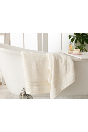 MNZ-Romantic Stripe Flush Bath Towel Set 50x85cm + 70x150cm إكرو 10029017-2