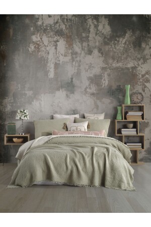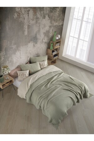 MNZ-Sage Green 4 طبقة متعددة المسلين 100% القطن غطاء سرير مزدوج 200x240cm BMB - 7300
