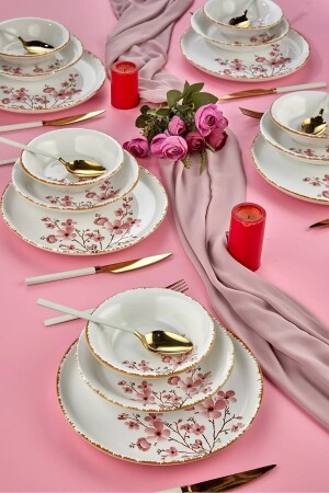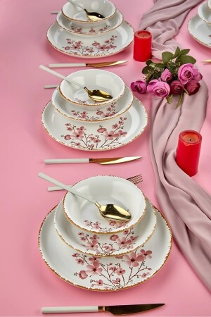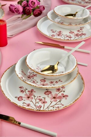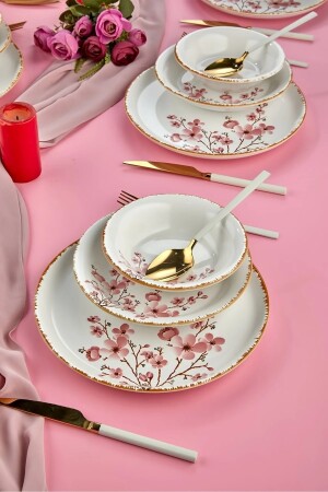 MNZ-Sakura Flower فخمة السيراميك 18 قطعة مجموعة عشاء، مجموعة عشاء 6 أشخاص