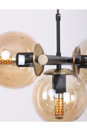 Pare Model Modern Spor Siyah 4'lu Glop Füme Camlı Avize