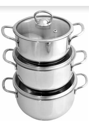 مجموعة من الأوعية MNZ-Samira 16,18,20 سم، ومقبض معدني أنيق وغطاء زجاجي
