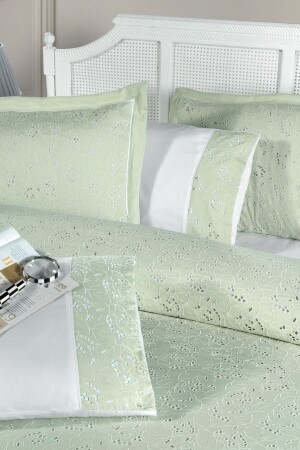 MNZ-Sandia V. 1 100% القطن ساتيين غطاء غطاء مجموعة ورقة مقبضة الحجم الملك (XL) الأخضر الأبيض