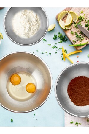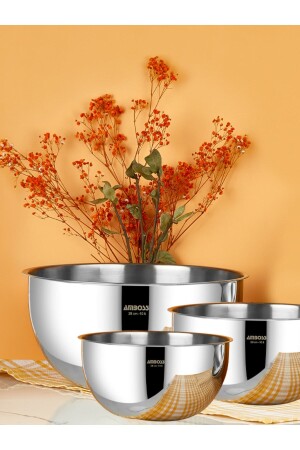 إن المنتج لدينا لديه 3 قطع. لا يحتوي على أجهزة شديدة الارتفاع. مجموعة Ambos Mixing Set ستكون واحدة من أكثر المنتجات عملية في المطبخ. يمكنك إعداد مزيج