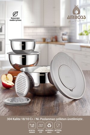 Krem Yuvarlak Kapaklı Kase 7'li K2014