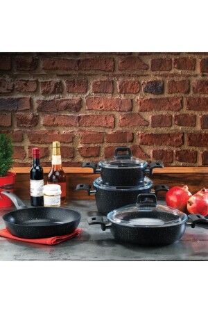 مجموعة طعام السوداء غير المقاومة للاشتعال - غطاء غرانيت مضخم على جسم من الألومنيوم ينقل الحرارة بشكل متساوى - سهل الحفاظ