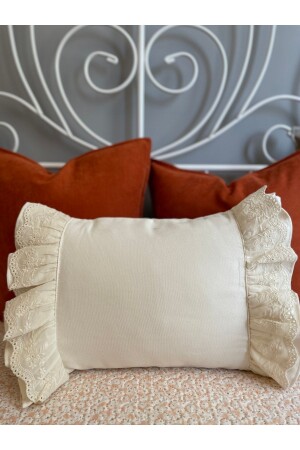 MNZ-Beige Country Frilly مستطيل رمي غطاء وسادة النسخة الناعمة العمر السكندنافي - بوهيمية - عيد الميلاد