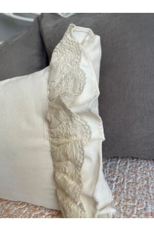 MNZ-Scallop تفاصيل Frilly مستطيل Ecru لون رمي وسادة قضية بوهيمية رمي وسادة قضية