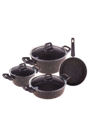 MNZ-Scarlett-7 قطعة غرانيت طباخات مجموعة الأسود - T3566