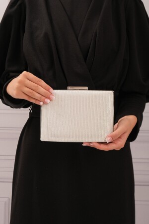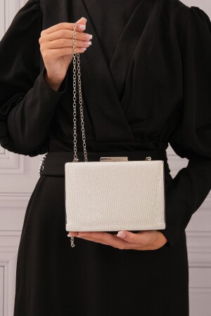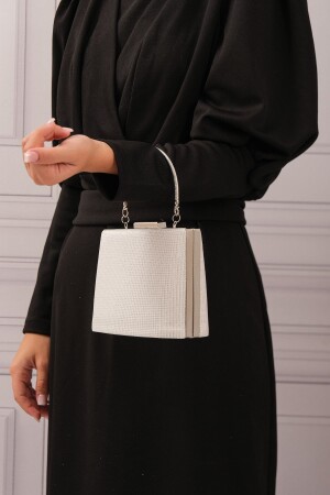 Kadın Yuvarlak Gümüş Taşlı Bilezik Aksesuarlı Abiye Clutch Portföy Çantası