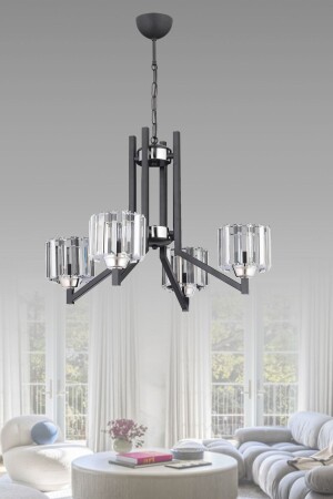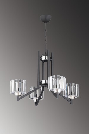 Pare Model Modern Spor Siyah 4'lu Glop Füme Camlı Avize