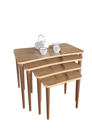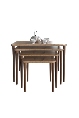 MNZ-Selena 4 قطع مقهى مستوى مقهى طاولة الخشب ساقي غرفة المعيشة طاولة الشاي الجوز ZSLN