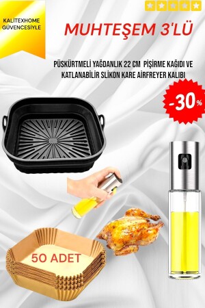 MNZ-SET OF 3 XXL-XL-L مربع طازجة جوية حاوية الطهي السيليكون < طازجة جوية زيت ورق 50 قطعة < حاوية ز