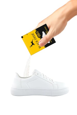 قبل استخدام حذائك في الصباح - (لا تطبق المنتج على الأحذية المتعرقة) ، قم بتصفيق حزمة واحدة في زوج من الأحذية. تأكد من انتشارها. يمكنك استخدام