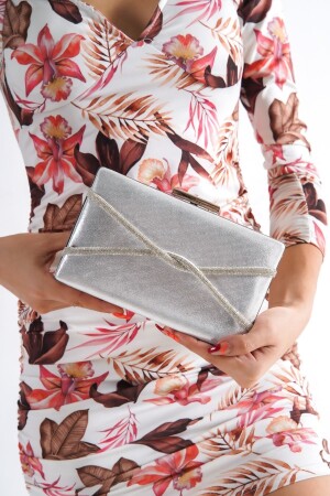 Kadın Yuvarlak Gümüş Taşlı Bilezik Aksesuarlı Abiye Clutch Portföy Çantası
