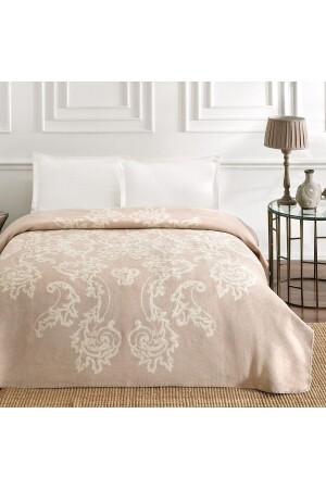 Krem Çift Kişilik Fransız Güpürlü Çeyizlik Battaniye Takımı