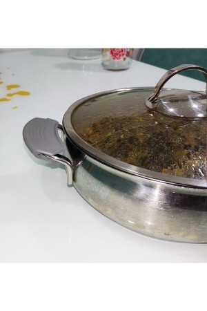 MNZ-Silicone Pot Pan Holder مضاد للنيران مجموعة من الملاعب غير العصية 9 × 4 سم سم رمادية (1 مجموعة تتكون من 2 قطع)