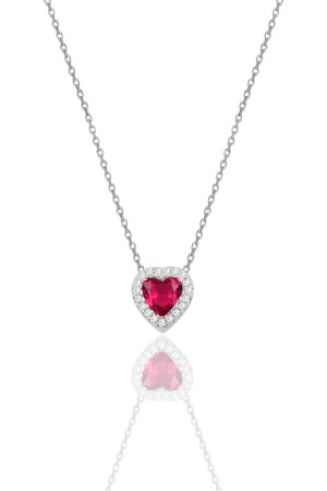 MNZ-Silver Rhodium Fuchsia Stone Diamond Model قلادة عنق SGTL11806