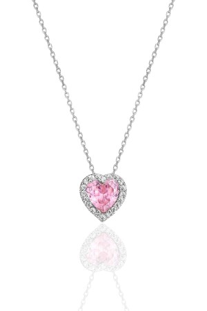 MNZ-Silver Rhodium Pink Stone Diamond Heart Model قلادة الخزينة SGTL12082