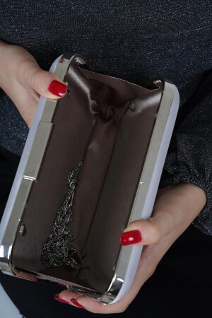 MNZ-Silver Satin White Row Stone Accessory طراز أوفال فستان المساء حقيبة نساء SCX00BYKKTK