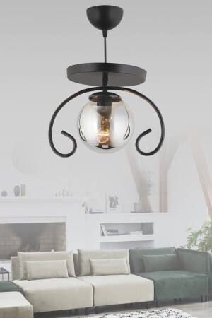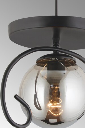 Pare Model Modern Spor Siyah 4'lu Glop Füme Camlı Avize