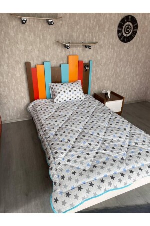 MNZ-Single Double Sided Welsoft Quilt Blue Big Star