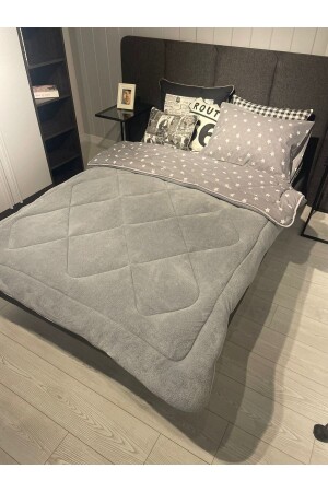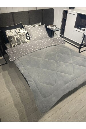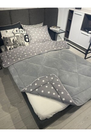 MNZ-Single Double Sided Welsoft Quilt Gray Big Star