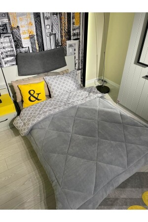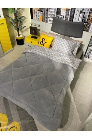 MNZ-Single Double Sided Welsoft Quilt Gray Chain