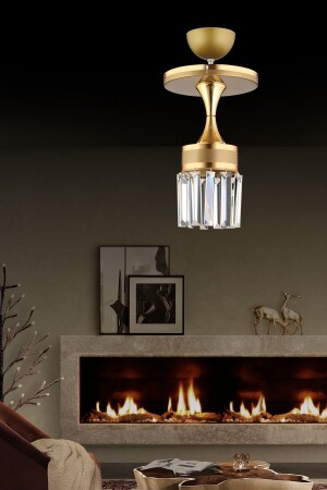 MNZ-Single Vintage Plafonier Crystal Stone زجاجية صفراء ذات شريط فاخرة شمعة AK00093