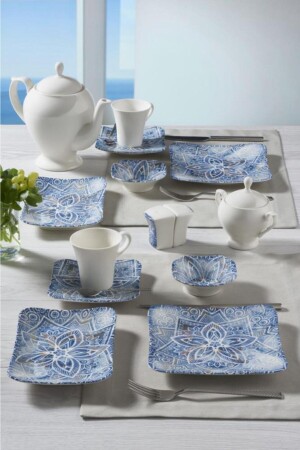 Çiğdem Blue Model 12 Kişilik 21 Parça Kahvaltı Takımı Kahvaltı Seti[ Mavi 12]