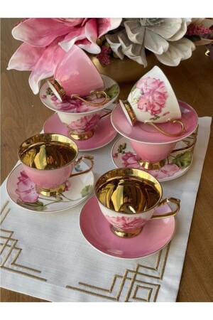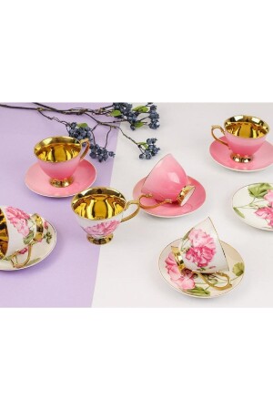 MNZ-Sembol Smyrna الوردي الذهبية الزهرية الفورسلين كوب قهوة مجموعة 6 أشخاص HARLEM-725