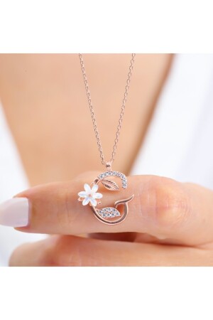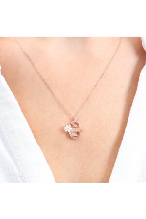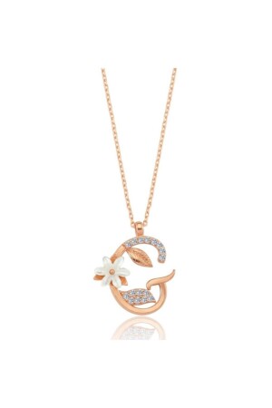 MNZ-Sparkling Magnolia Flower G Letter Rose Color Letter Silver Necklace KL02826-MLV