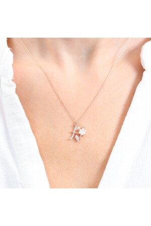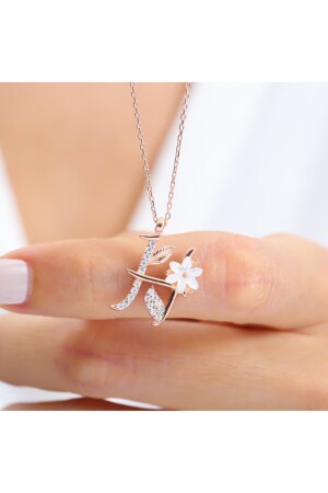 MNZ-Sparkling Magnolia Flower Letter H Rose Color Letter Silver Collar KL02825-MLV