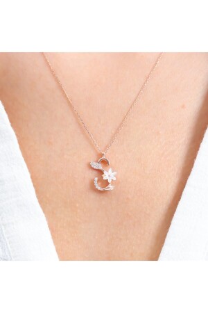MNZ-Sparkling Magnolia Flower S Letter Rose Color Silver Letter Necklace KL02813-MLV