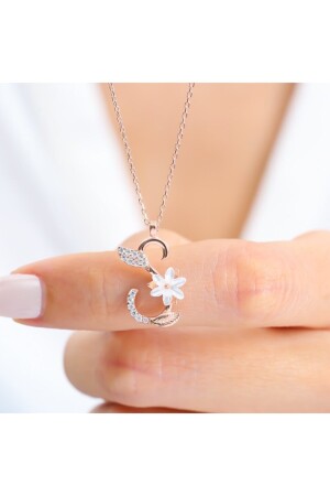 MNZ-Small Size Crescent and Star Silver Necklace with Thin Chain Türkiye Flag Necklace Uc-207 (منصورة صغيرة)