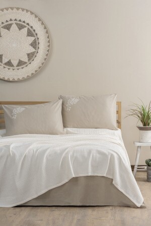Saçaklı Pamuk Pike Çift Kişilik Loris Bej (200x230cm) 0903010124009