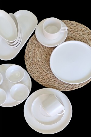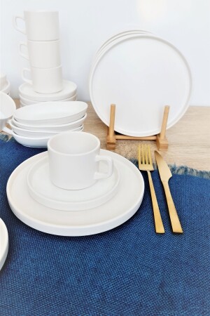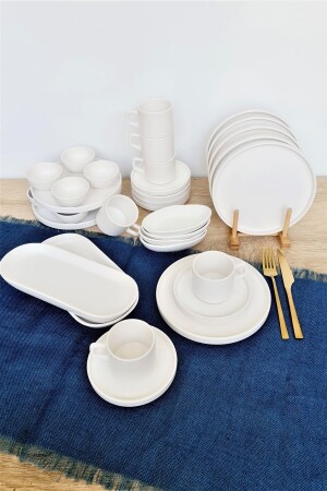 MNZ-Stackable Matte White 34 قطعة الإفطار مجموعة 6 أشخاص khvl48