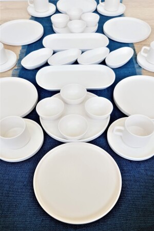 64 Parça 12 Kişilik Platin Modern Krem Kahvaltı Takımı