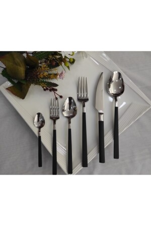 MNZ-Stayle 72 قطعة أسود الفولاذ الفوكس ملعقة سكين مجموعة CMDCSGGTGS08