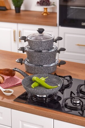 MNZ-Stone 7 قطع غرانيت طباخات مجموعة رمدية TAC-3632