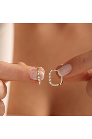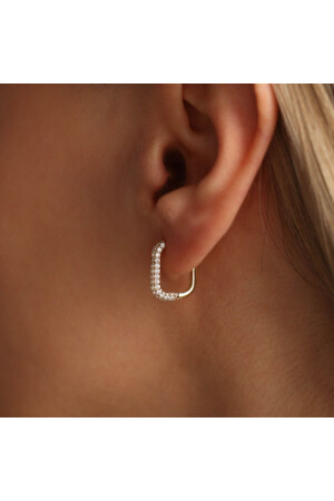 MNZ-Stone Gold Hoop Earring Square Form 1. 5 سم T12580