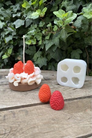 MNZ-Strawberry Quadruple Candle Mold (سليكون) قطعة واحدة