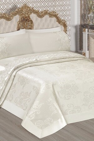MNZ-PRESTIJ Textiz Prestij Sultan فرنسي دودي بيك مجموعة مزدوجة جاكارد وبلقة بيك 230x240cm •قطن ورقة ساتيين 220x2